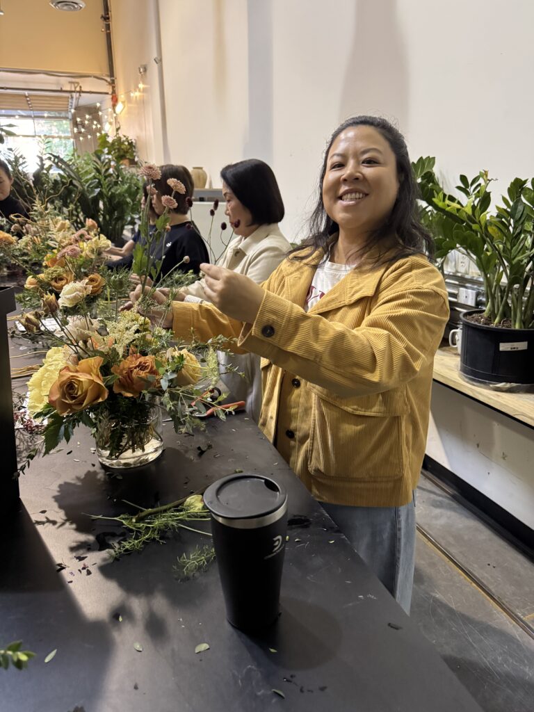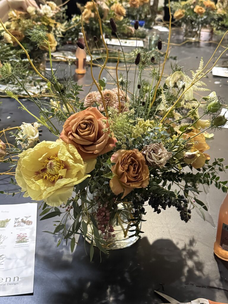 Another trick that ikebana uses is to give flowers different heights so that they look more natural, and also to leave some space between stems, giving them some breathing room. I loved the flowers that Sachi chose to use in this class, they were the perfect colors for an autumn bouquet. I was extremely happy with how my arrangement turned out and will definitely be implementing the things I learned in future Trader Joe’s creations!